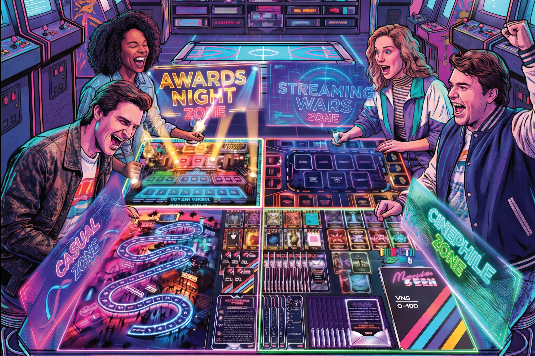 Boards, decks, dice, dials, drama. Just bring your crew!